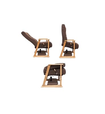 Combines upright seating with a controlled recline for relaxation at home without clinical styling.